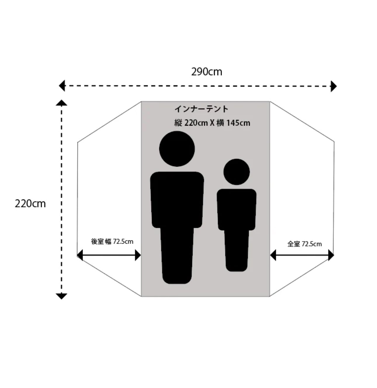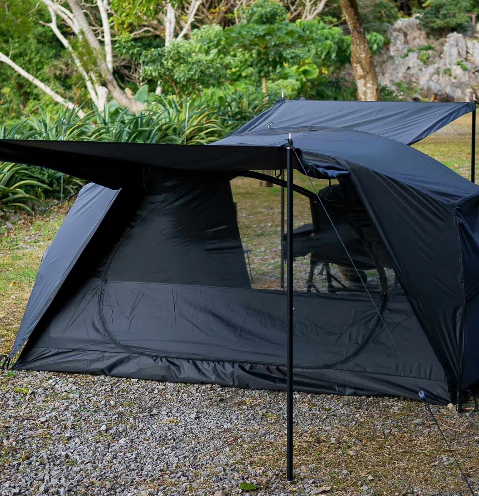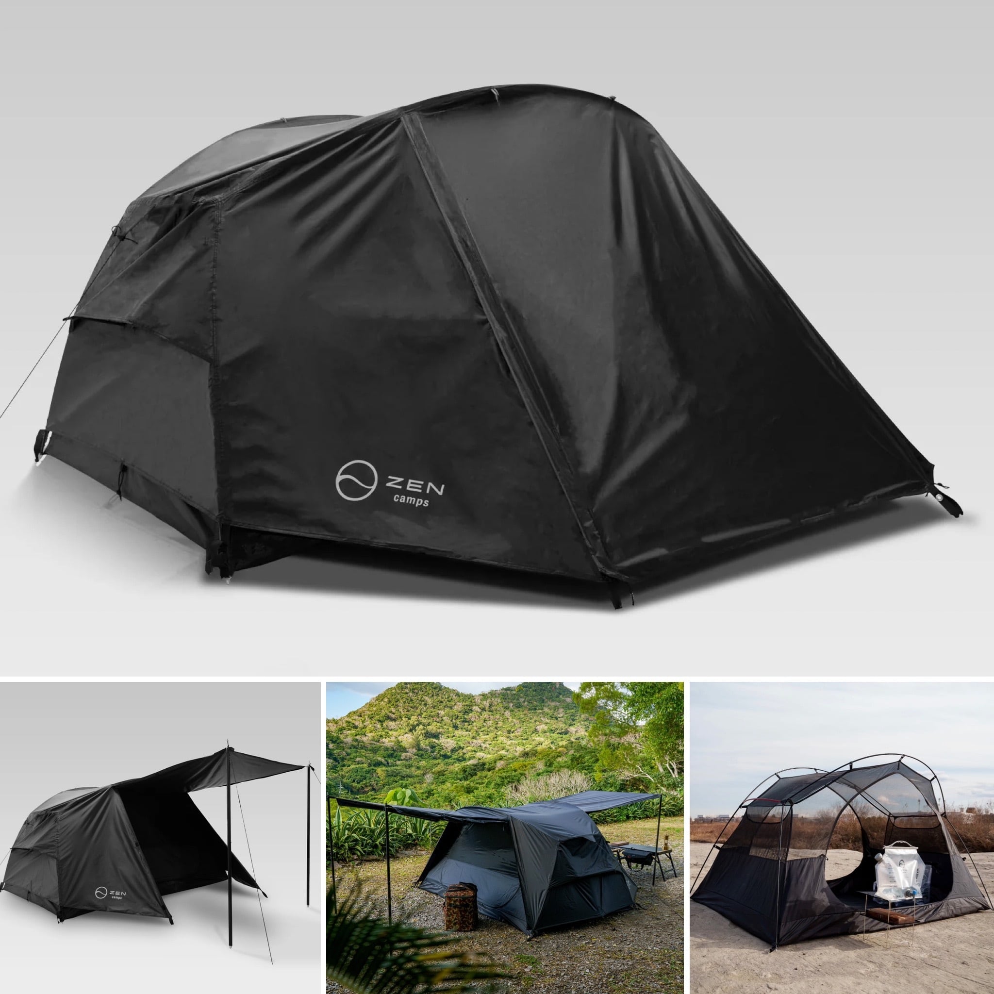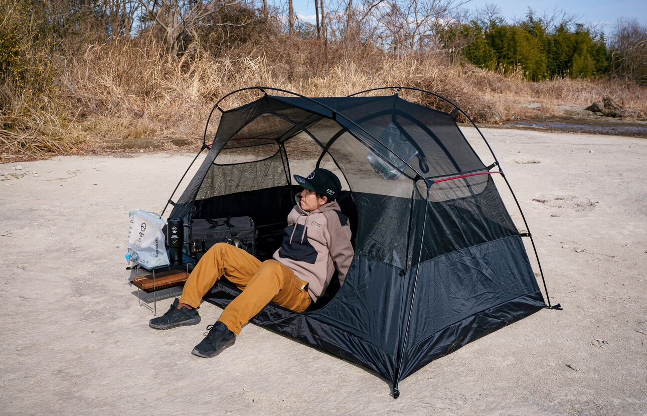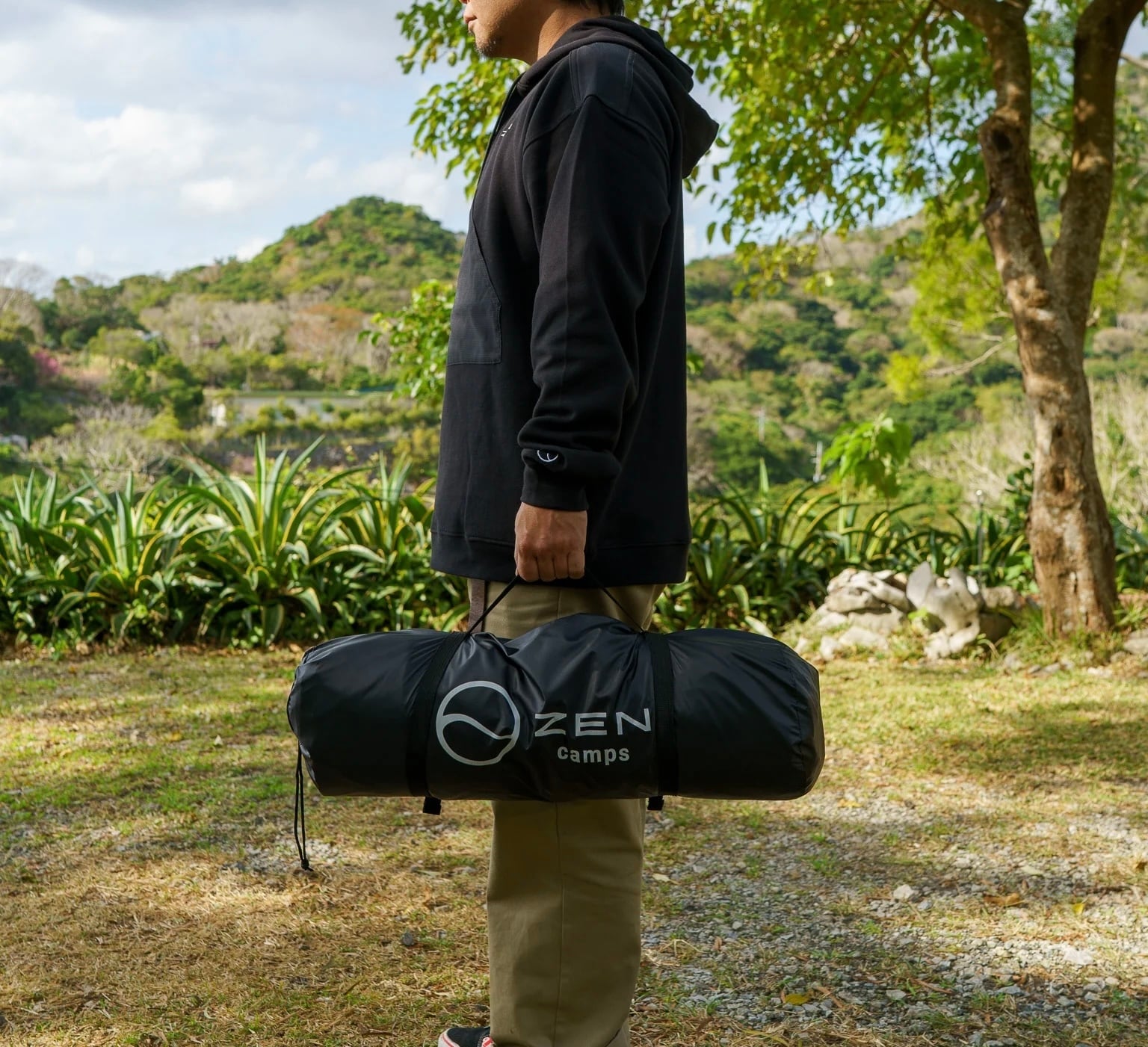 ZEN Campsらしいブラックカラーをベースに1人で余裕のあるスペースを確保できるソロキャンパー向けのドーム型テント。