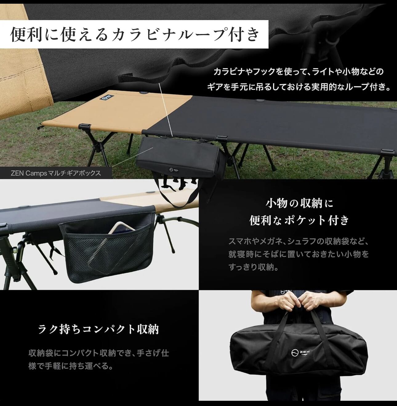 ZEN Campsカラーのブラックにサブカラーを加え、コットでは珍しい2レイヤーに仕上げています。
