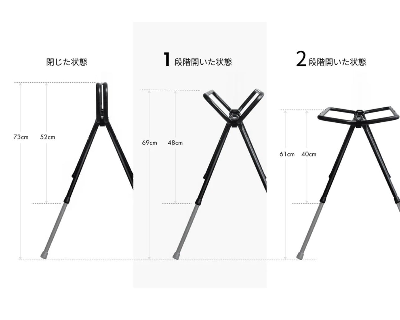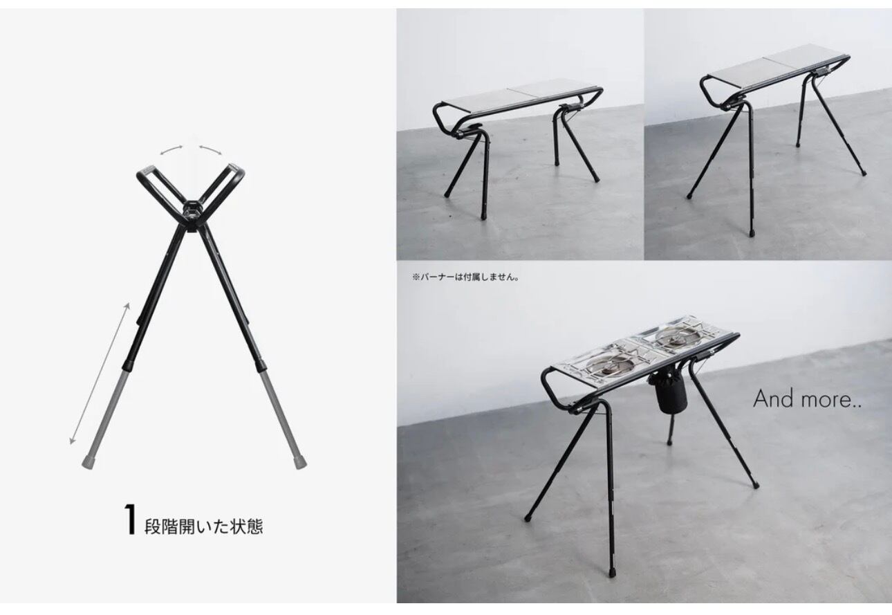 上部の角度は3段階、脚の長さは2段階に調節可能なマルチテーブル
