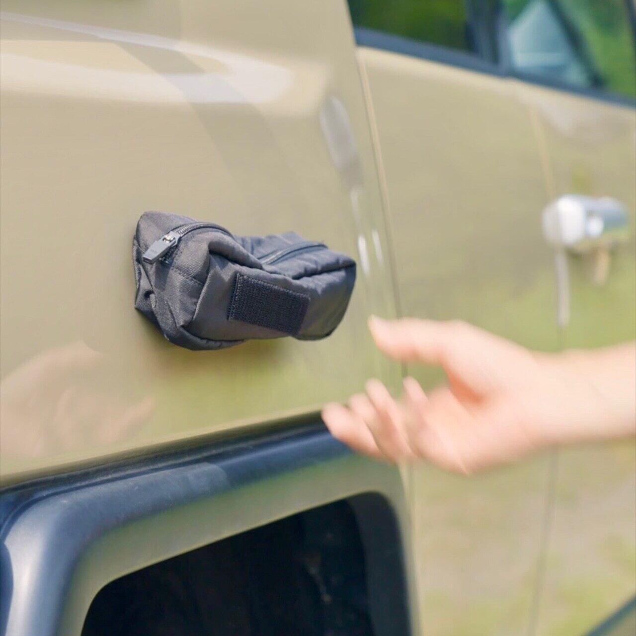 車の内装、窓の内枠等にポーチセットしておき、そのまま中のものを取り出したり、あるいはポーチごと取り外して違う場所にくっ付けたり、使用用途は沢山あります。