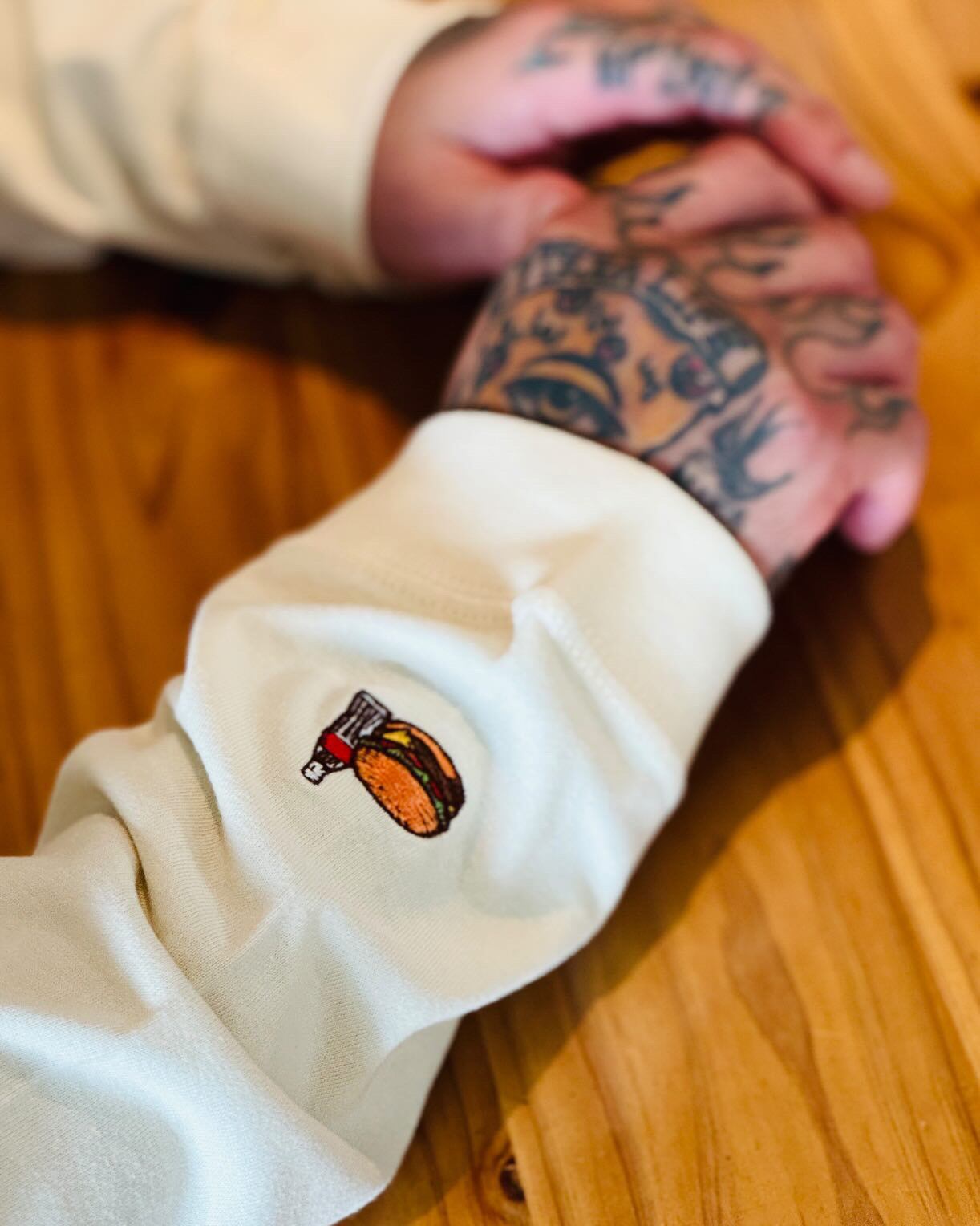 首まわりにはダブルステッチを採用し、何度洗っても型崩れしにくく、アウトドアでもストリートでも長く愛用していただけます。