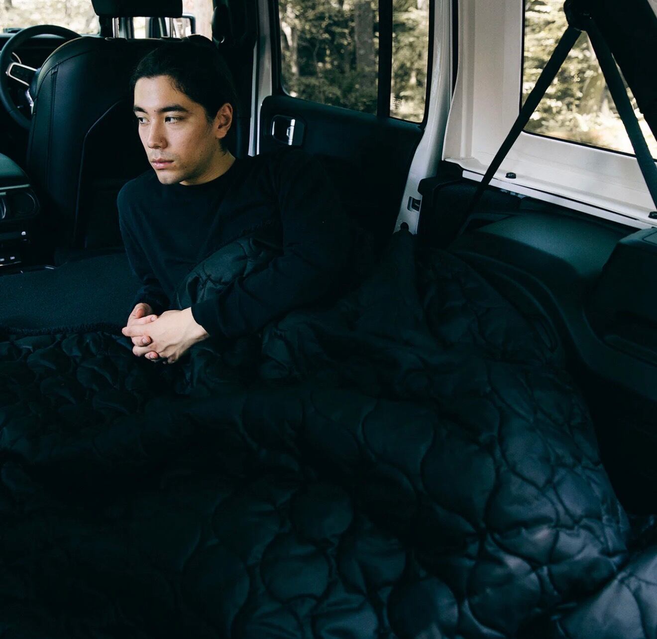 Lサイズは、138×195センチ。フロントのボタンを留めるだけでポンチョとして使えます。両手があくので、なにかと動きがちな車中泊キャンプでも、作業しながら使えます。