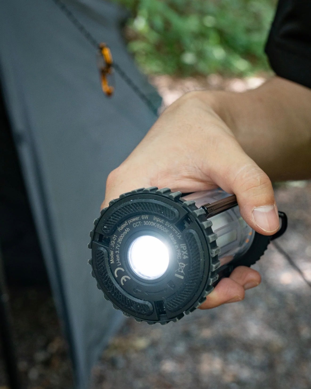 さらに底面にもう1つのライトを備えており、手持ちライトとしても使用することが可能(90lm)