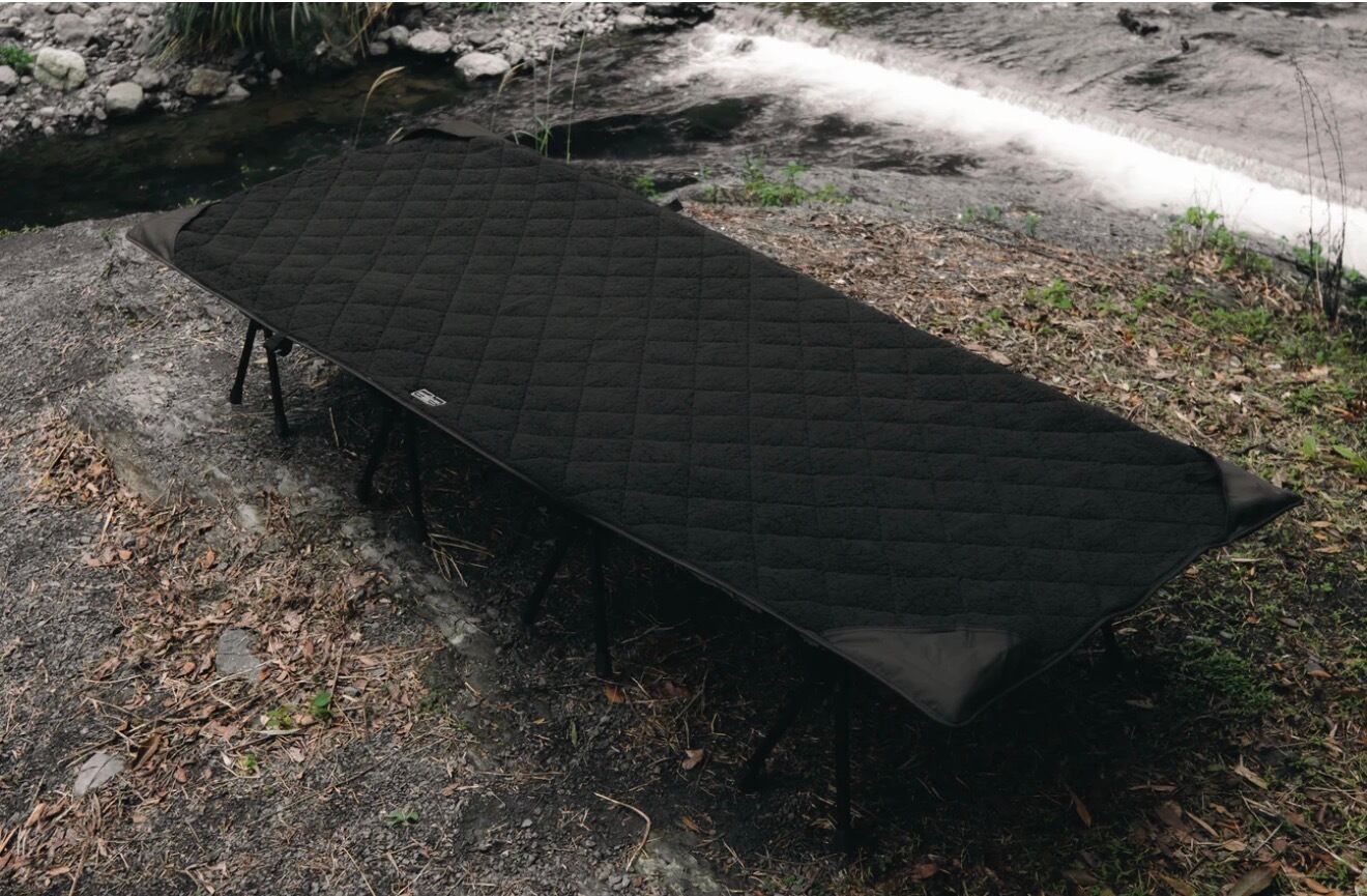 6層構造で熱をしっかり蓄え、寒さの厳しい秋冬キャンプでもぬくもりを長時間キープする「コットブランケット」