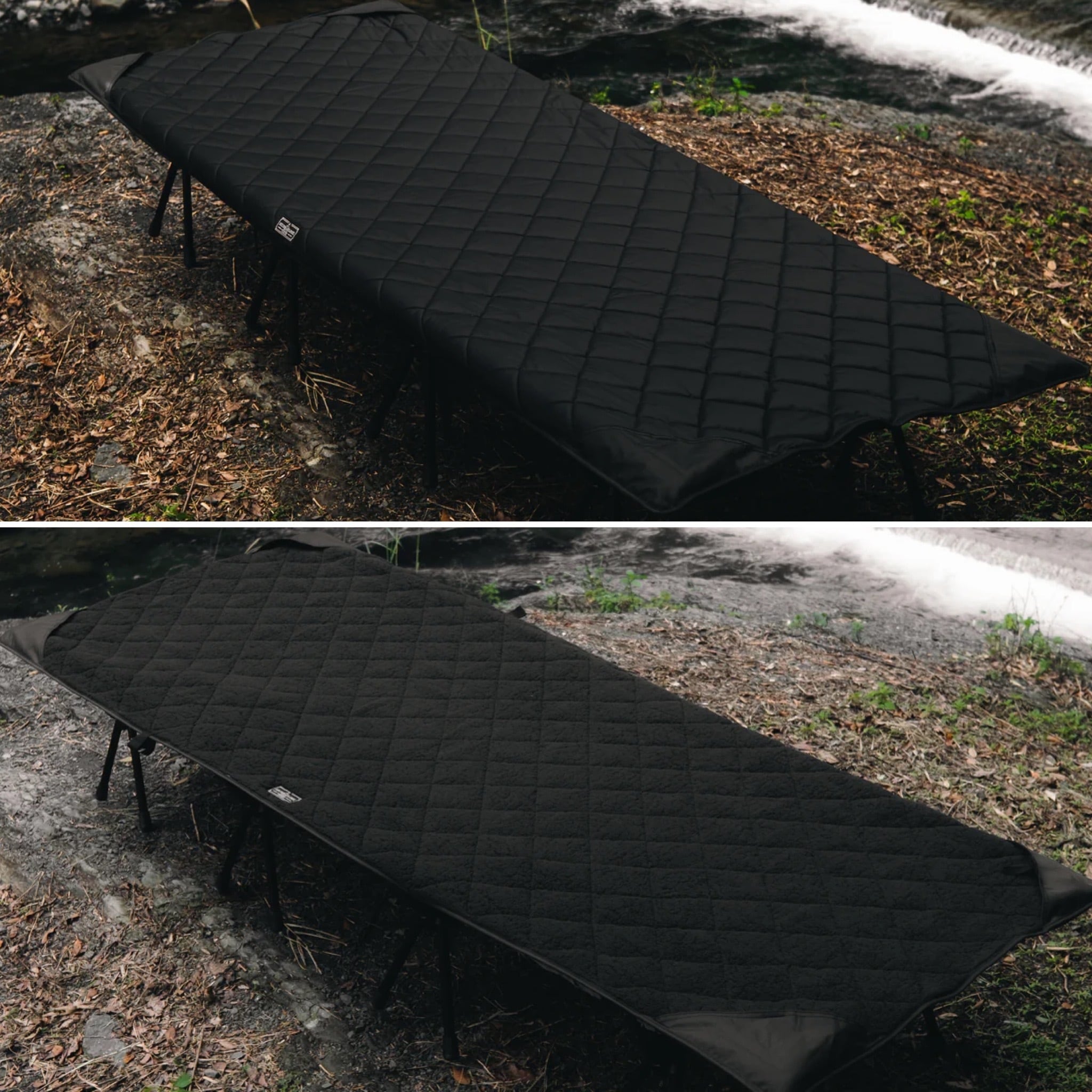 秋冬や春先のキャンプではコットとマットだけでは地面からの冷気で寒く感じる場合がありますが、コットブランケッは寝袋との間に温かい空気の層を作ることができるため底冷え対策に繋がります。