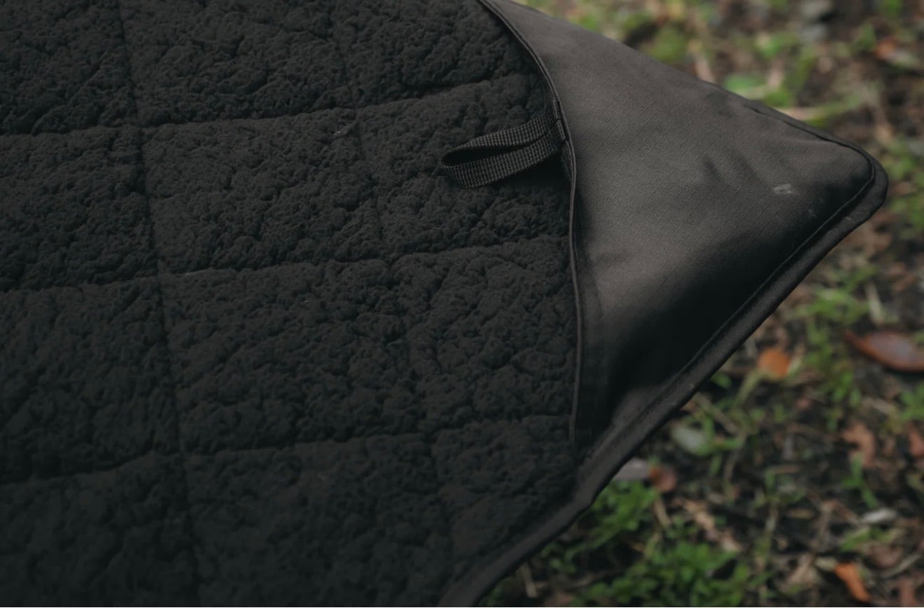 6層構造で熱をしっかり蓄え、寒さの厳しい秋冬キャンプでもぬくもりを長時間キープする「コットブランケット」