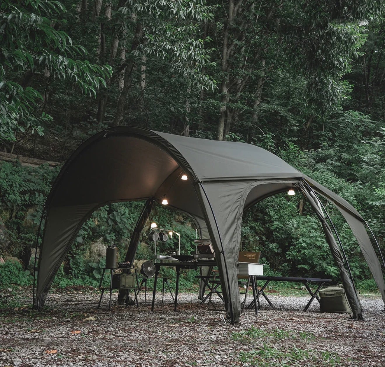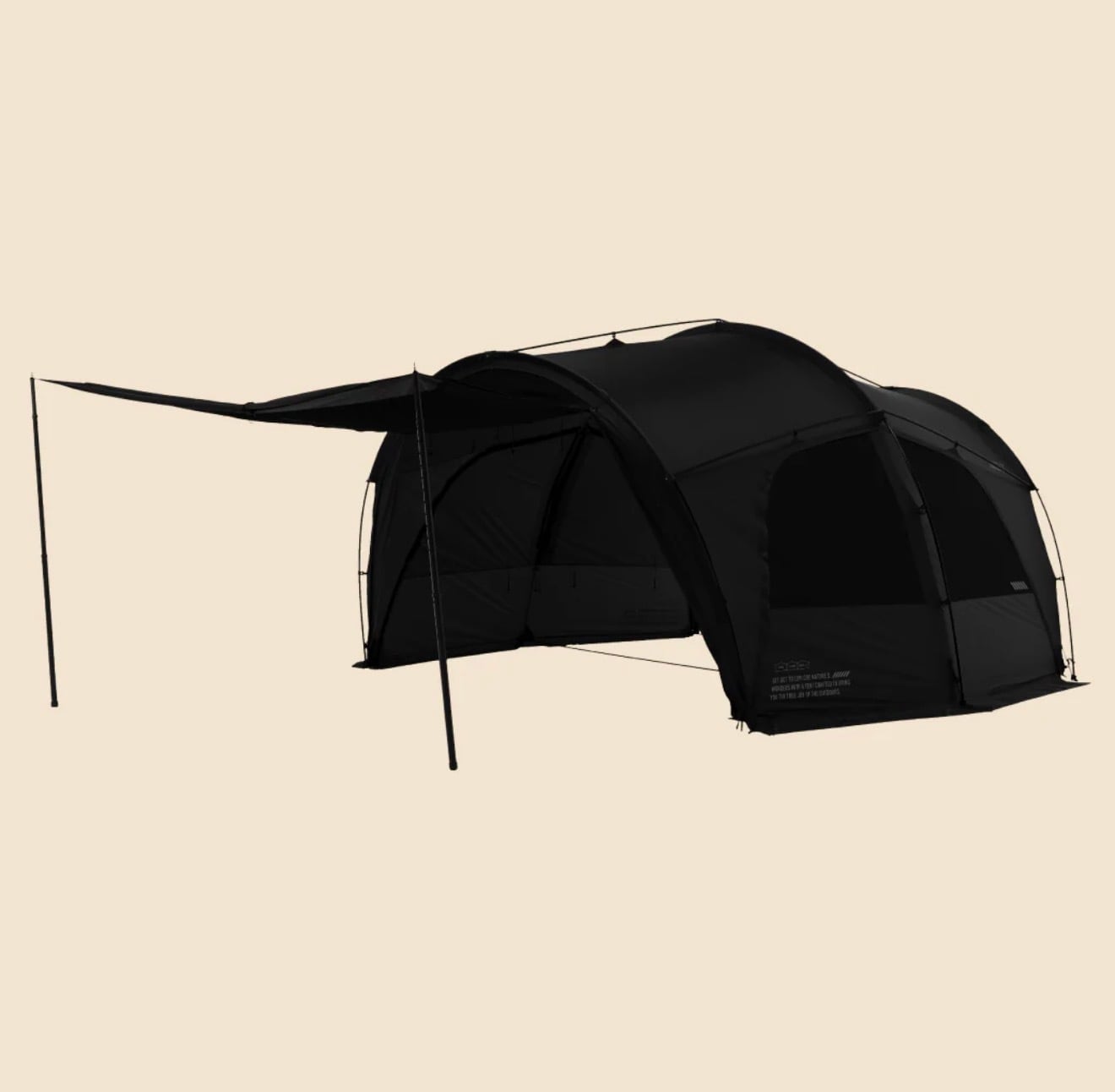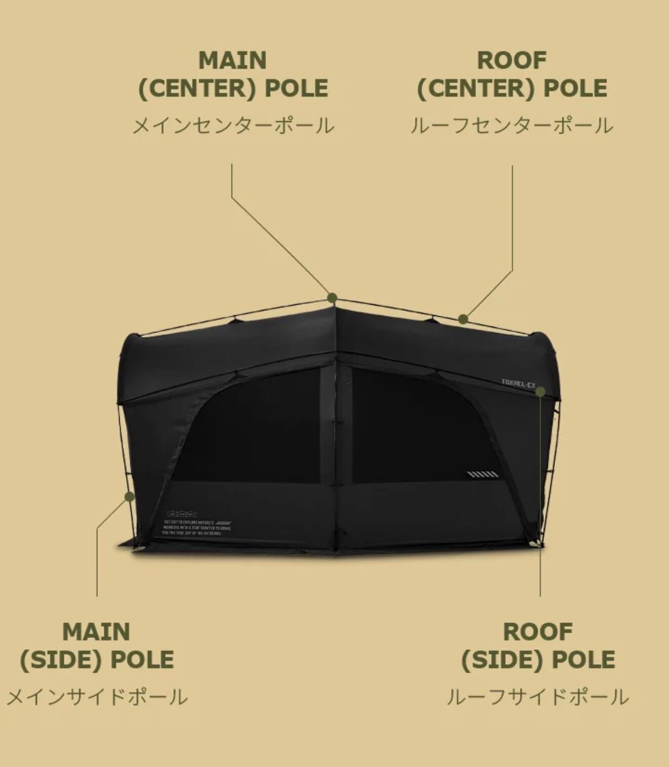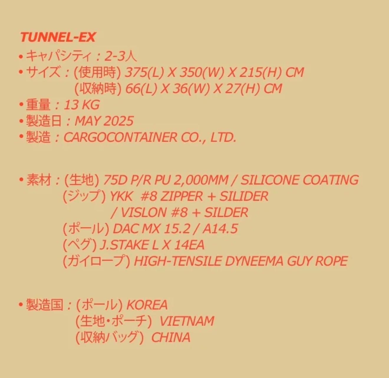 TUNNEL-EXは、CARGO CONTAINERとDACが共同で開発した2番目の作品であり、ドームテントの安定感とトンネルテントの開放感を兼ね備えたハイブリッド構造のプレミアムシェルターです。