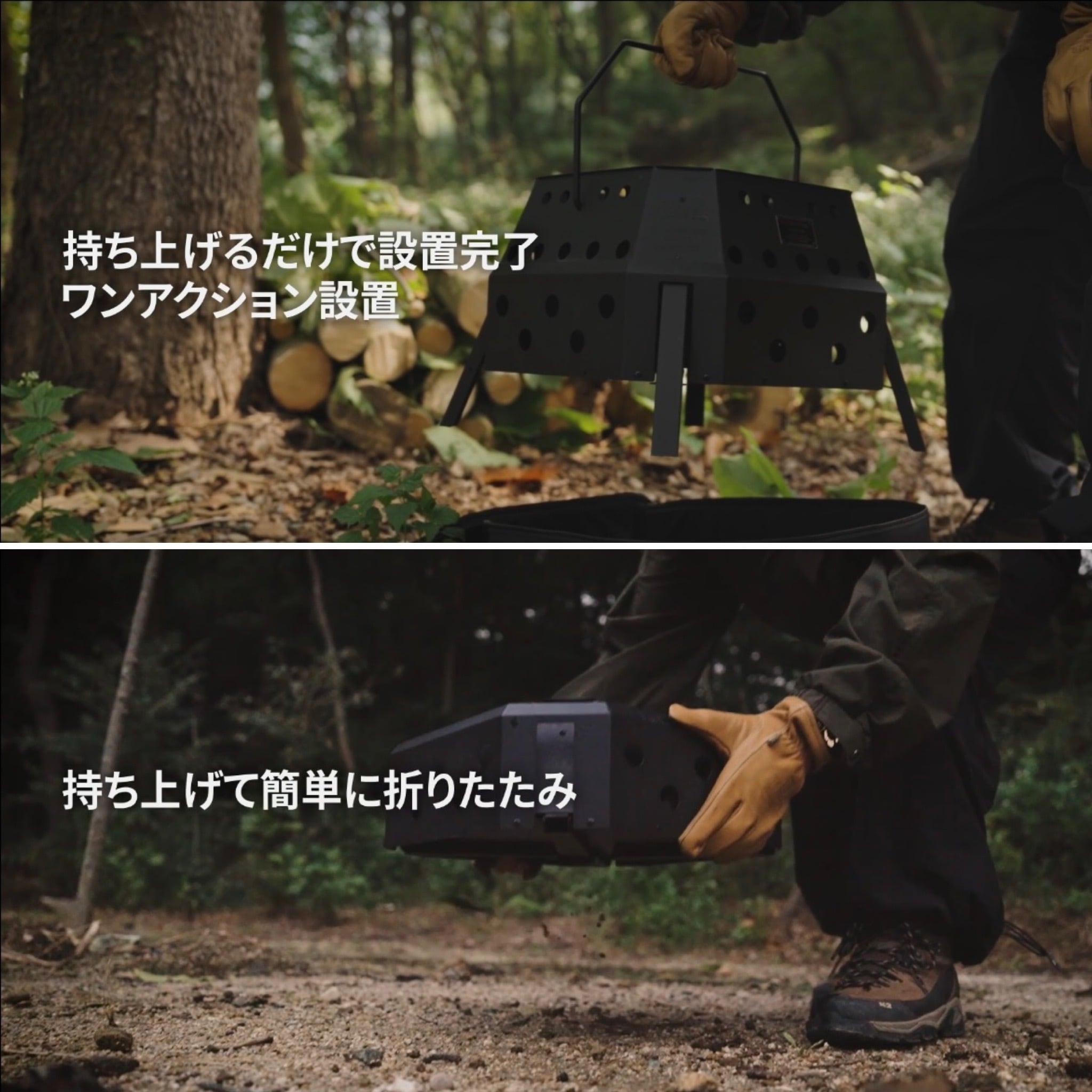 カーゴコンテナが満を持して送り出す初の焚き火台「FIRE PITMAX」は、ワンアクション構造で、初心者でも直感的に設置・撤収が可能。