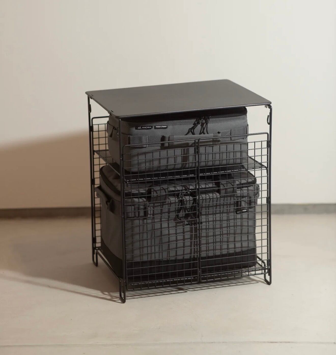 ギアバッグ類の収納ラックにも使え、マルチダストバケット( 別売) と組み合わせてスタイリッシュなルックスのゴミ箱に。