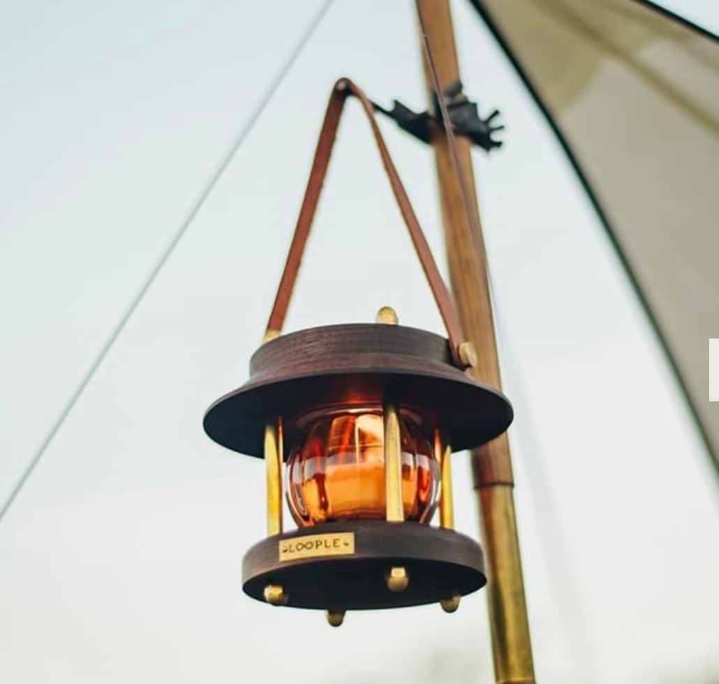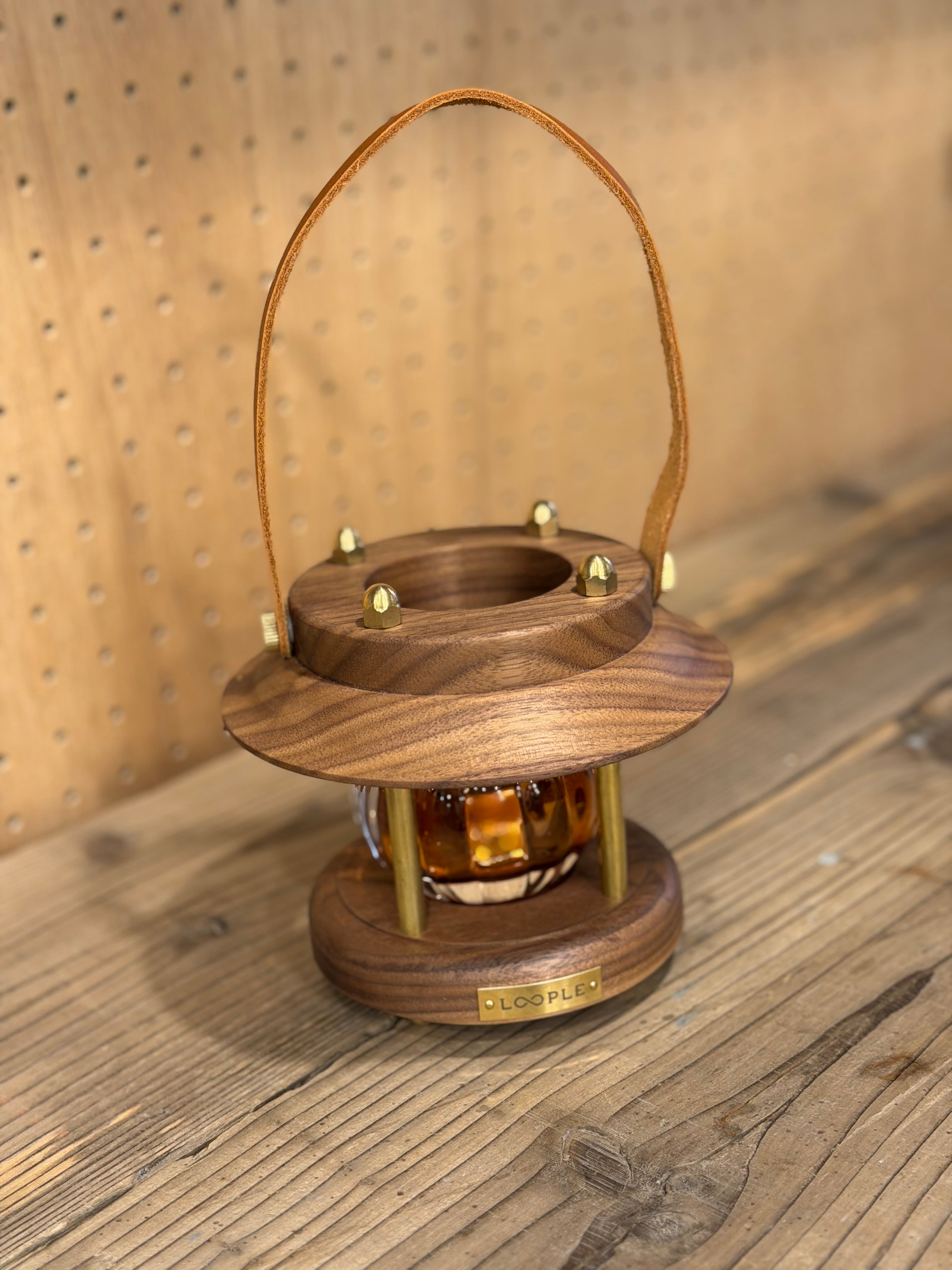 真鍮とウォールナットを組み合わせた重厚なデザインは、LOOPLEの人気アウトドアキャンドル「グローブ」をベースに開発。