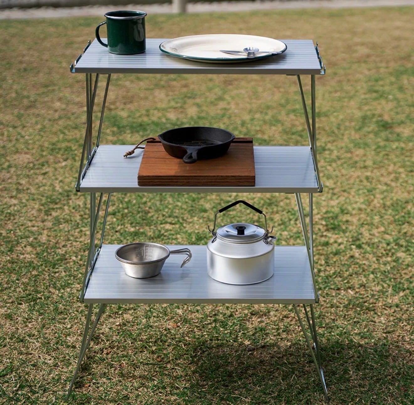 最大3段までスタッキングが可能で、アウトドアシーンでの棚として重宝します。
