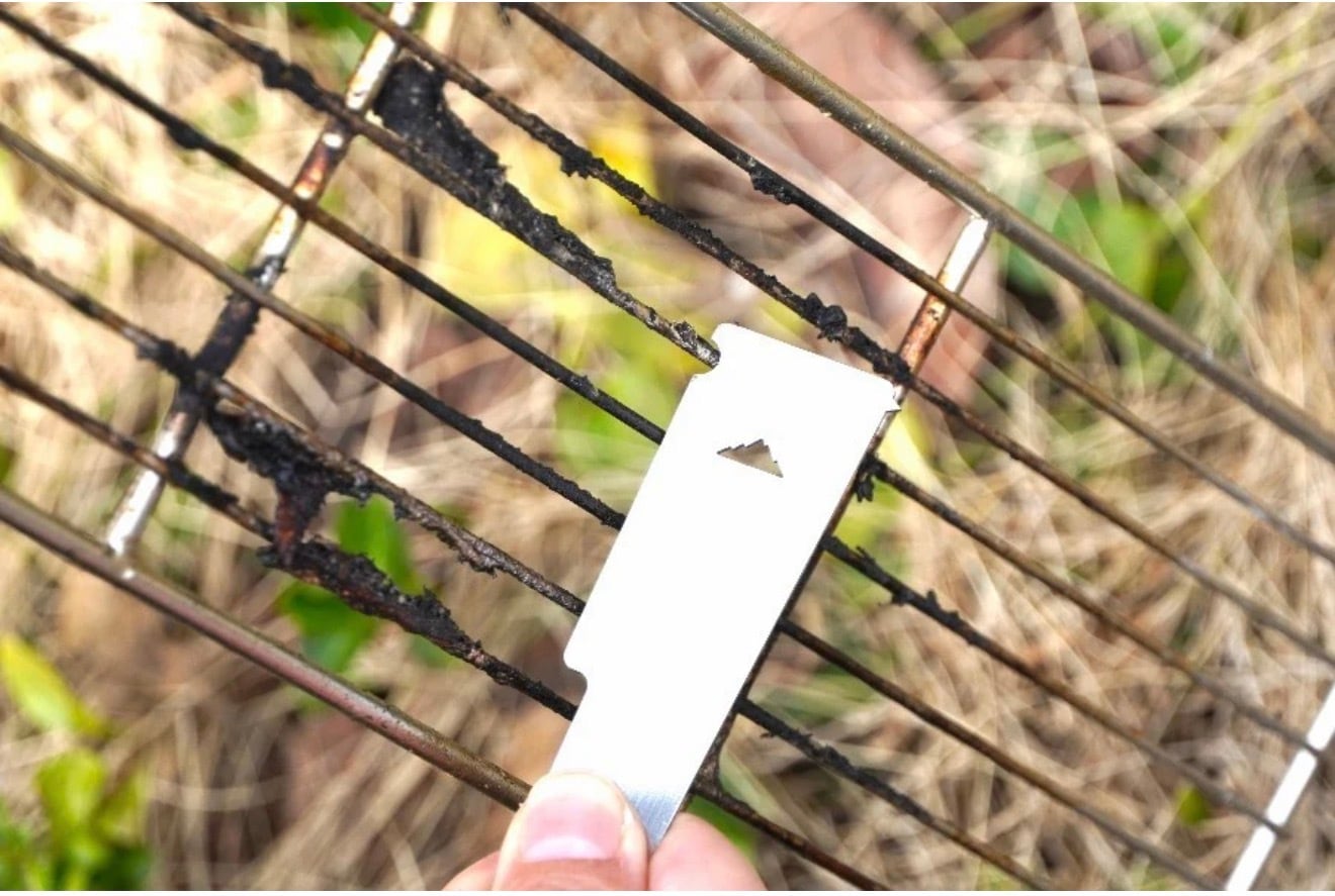 スクレーパーの半円形のくぼみ部分は、焼き網に付いた焦げ付きや汚れの清掃にもおすすめです。