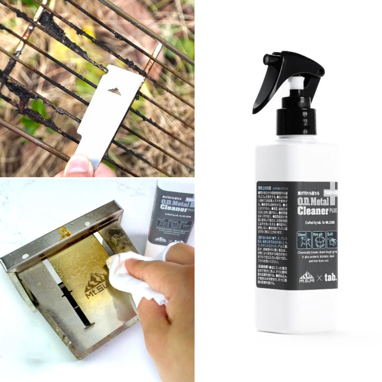 水なしでスプレーして拭くだけで油汚れや煤汚れを落とせる「tab.」の大人気商品「O.D.メタルクリーナー」を、Mt.SUMI仕様でさらにパワーアップ