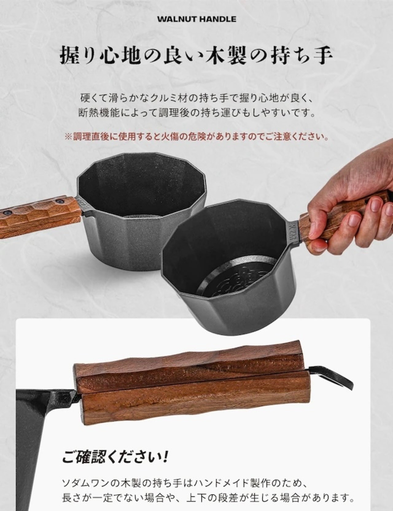 硬くて滑らかなクルミ材の持ち手で