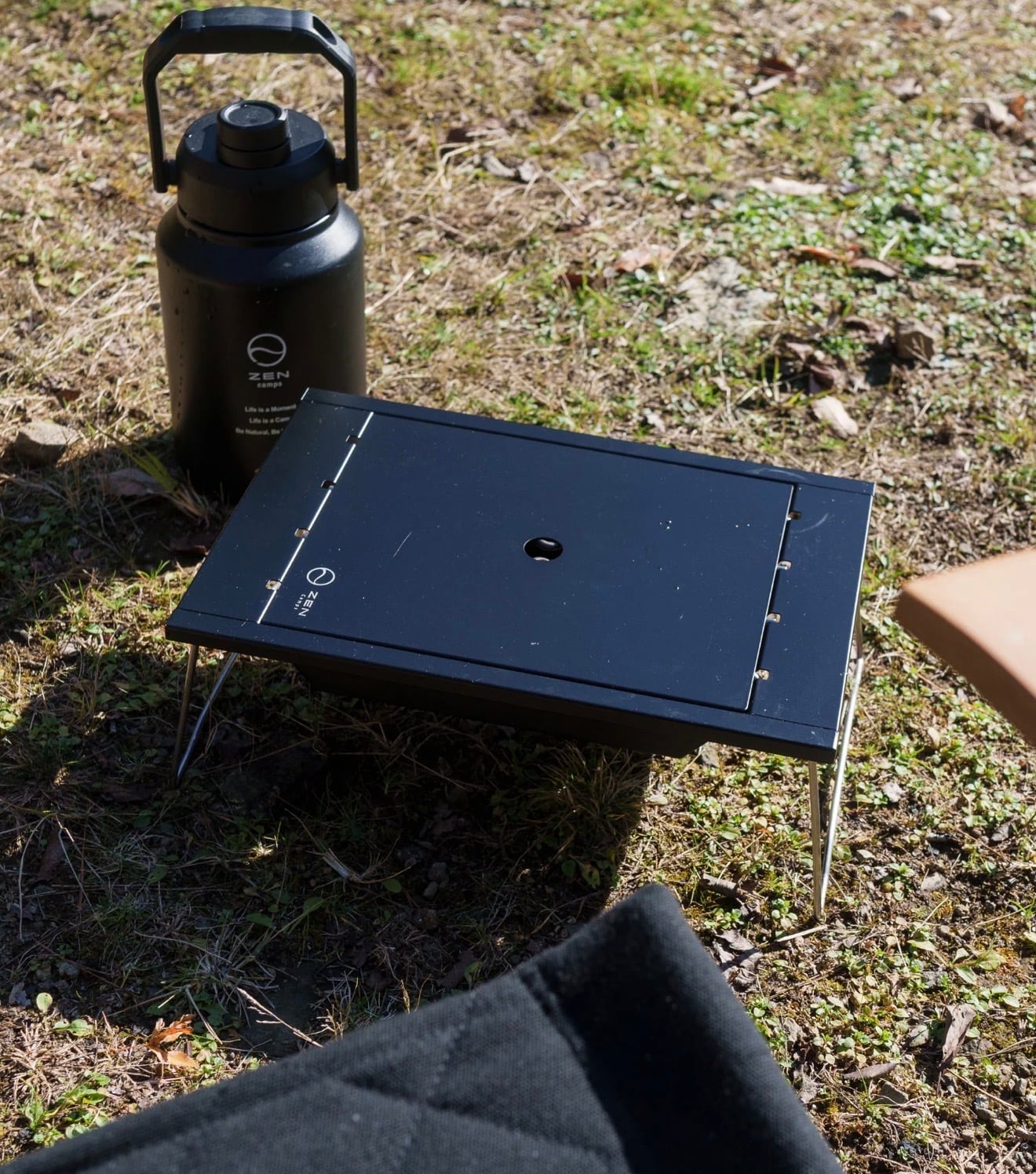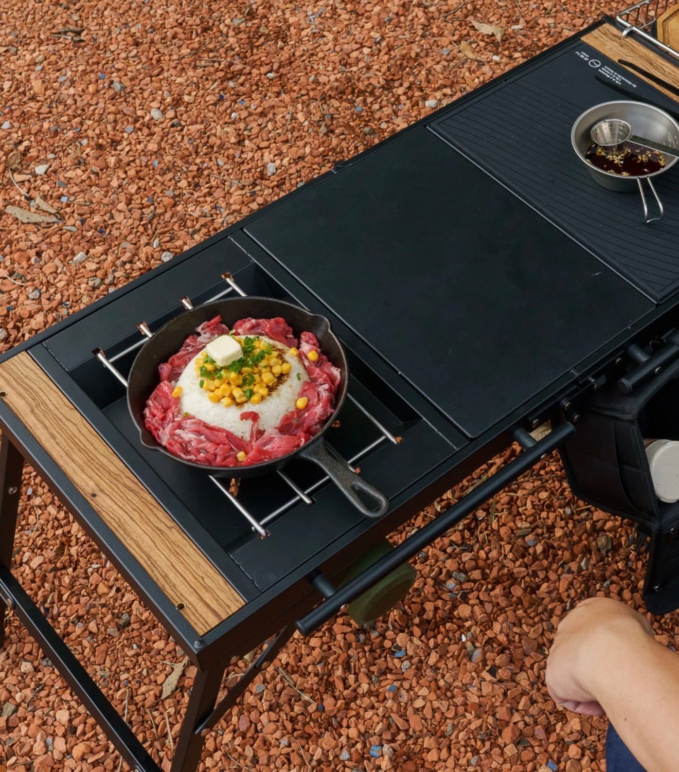 テーブルにバーナーがあることで調理がとてもし易く、キャンプの幅が1つ広がります。